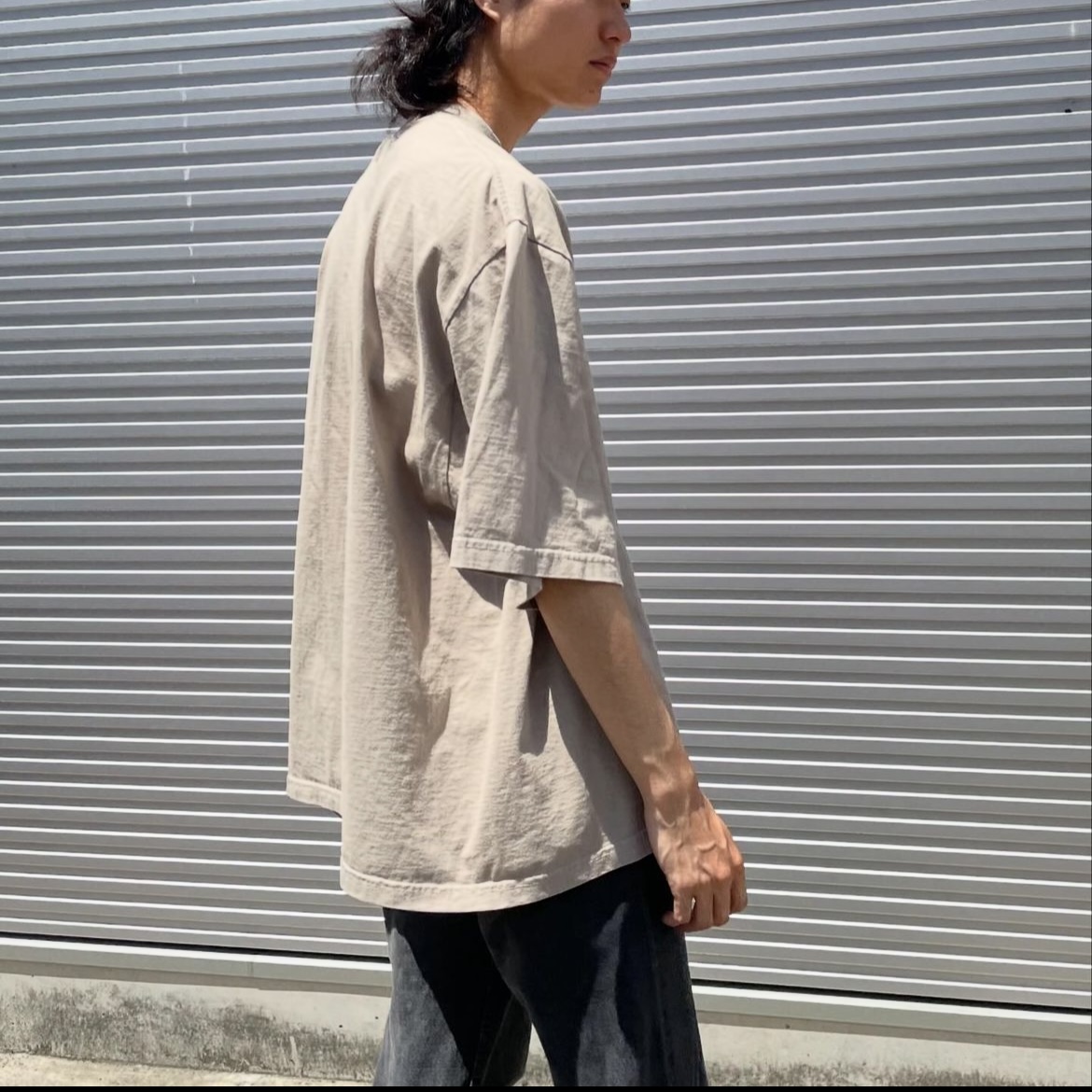 7.5ozのヘビーウェイトなボディを使用し、丈を短くし身幅を広く取ることで袖が下がるボックスシルエットが特徴的です。