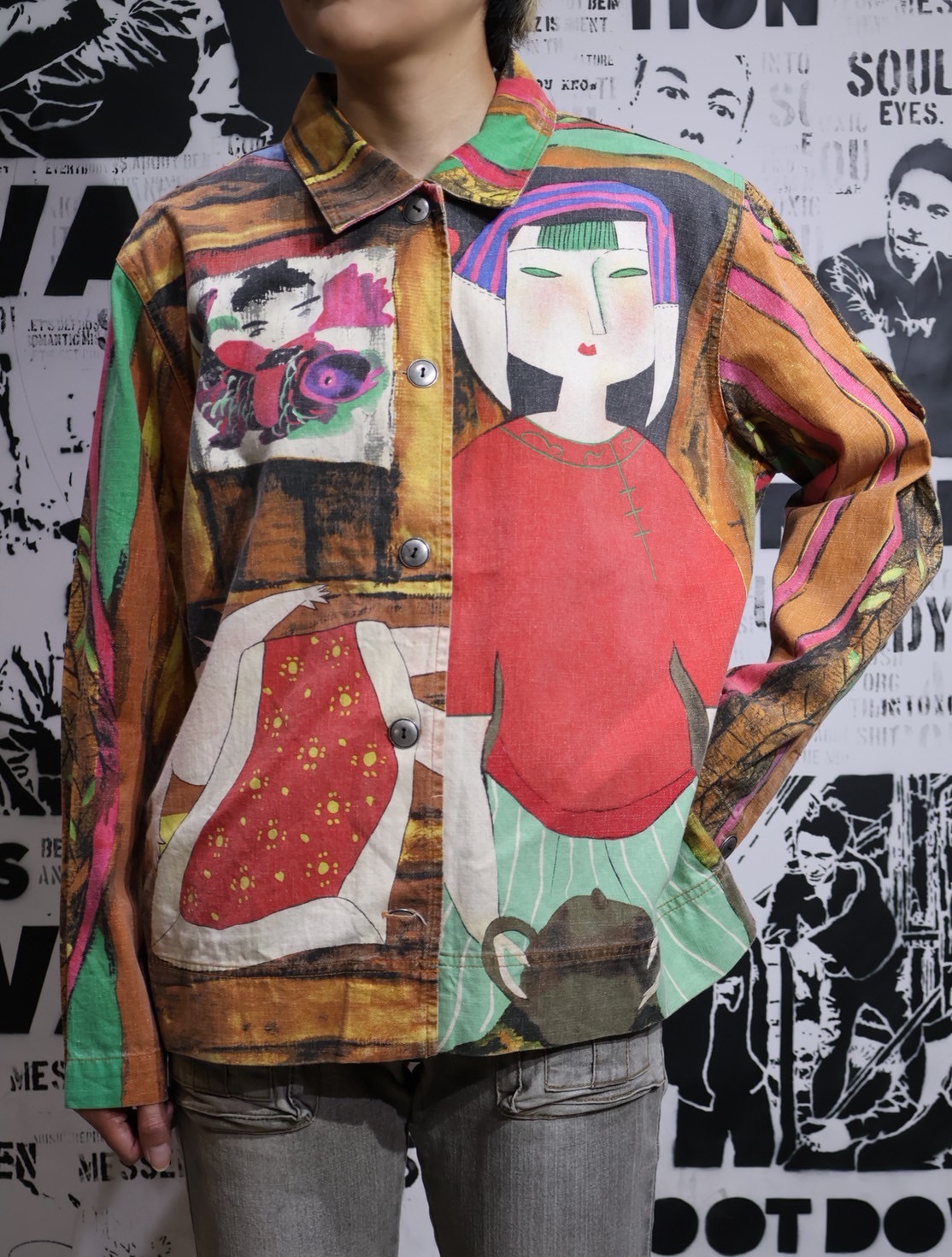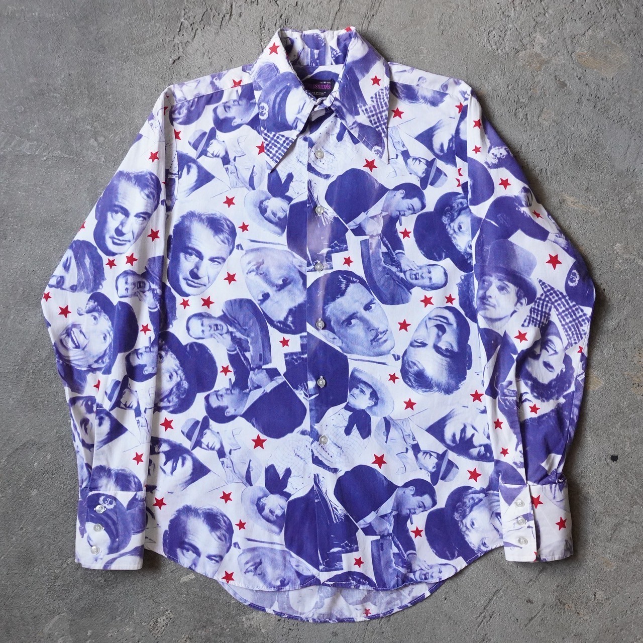 キングコングやその他ハリウッドスター、コメディアン等のフォトプリント。1970年代頃を象徴するポップな総柄のバランスは、ウッドストックの総柄と並びコレクタブルな1点。