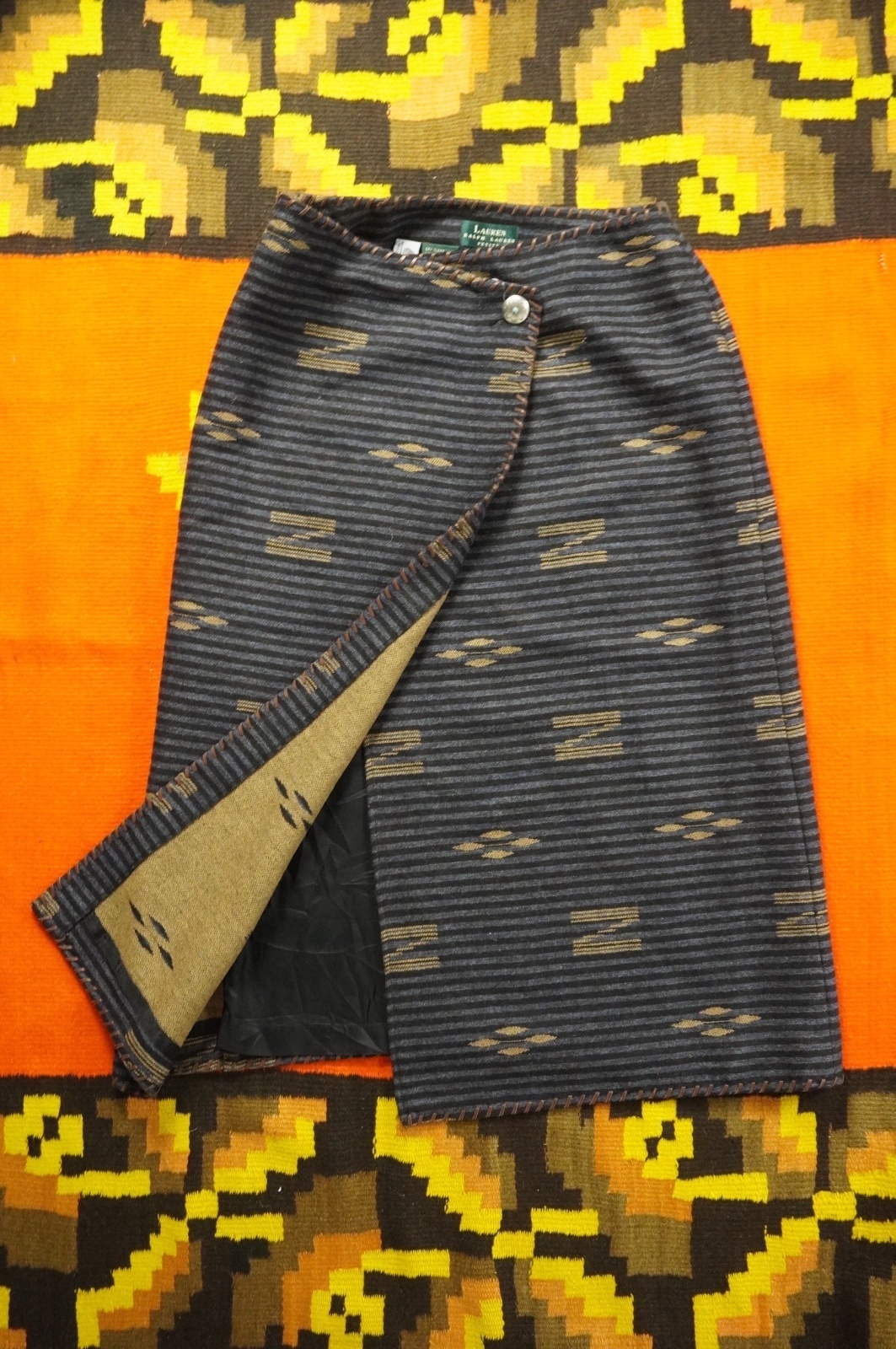 LAUREN Ralph Lauren ネイティブ柄 コンチョボタン付き ウールラップスカート
