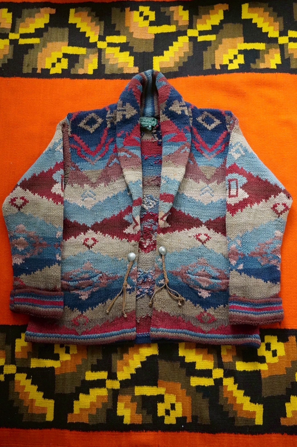 80〜90's Ralph Lauren POLO COUNTRY ネイティブ柄 ショールカラー コットンニットガウン L