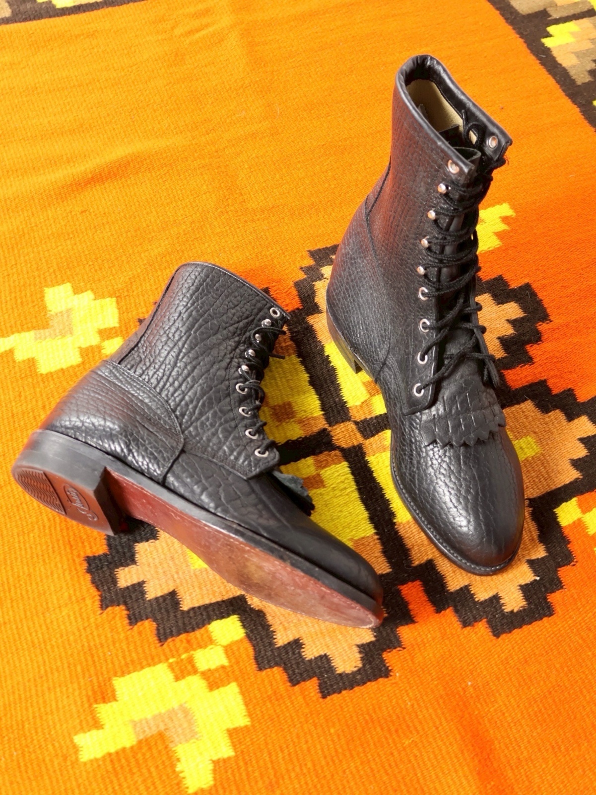 そのルーツは、領主や貴族の狩猟に随行する「従者(ghillie)」とされ、湿地帯や森林で活動する際に履いていたものになります。
