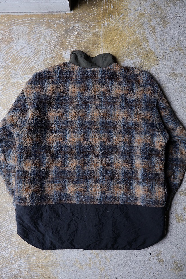 肉厚なボアフリースにナイロンの切り替えを効かせたデザインで、