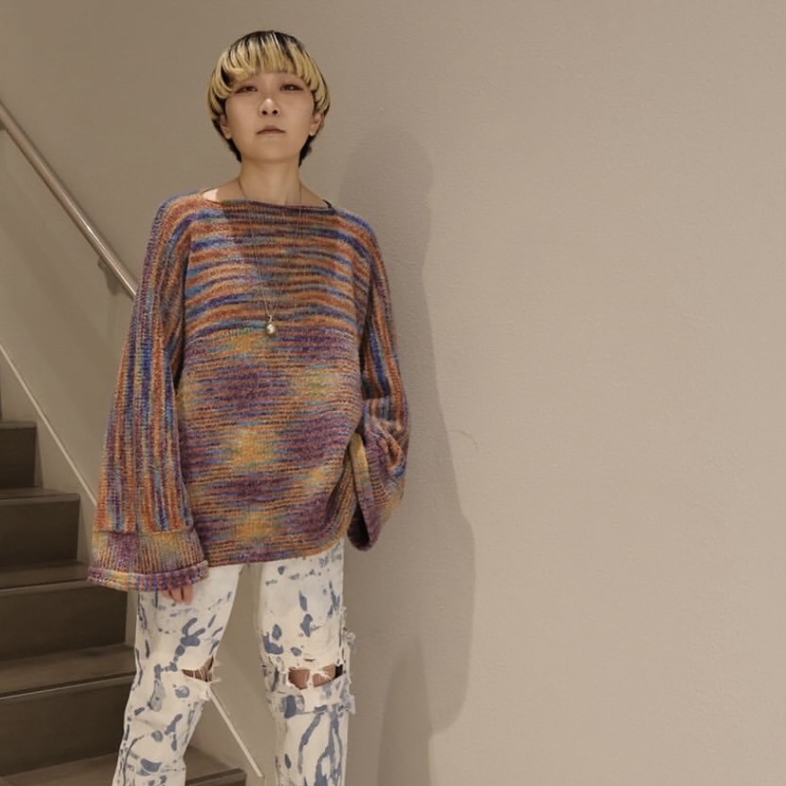 マルチボーダー柄 シャギーニットセーター