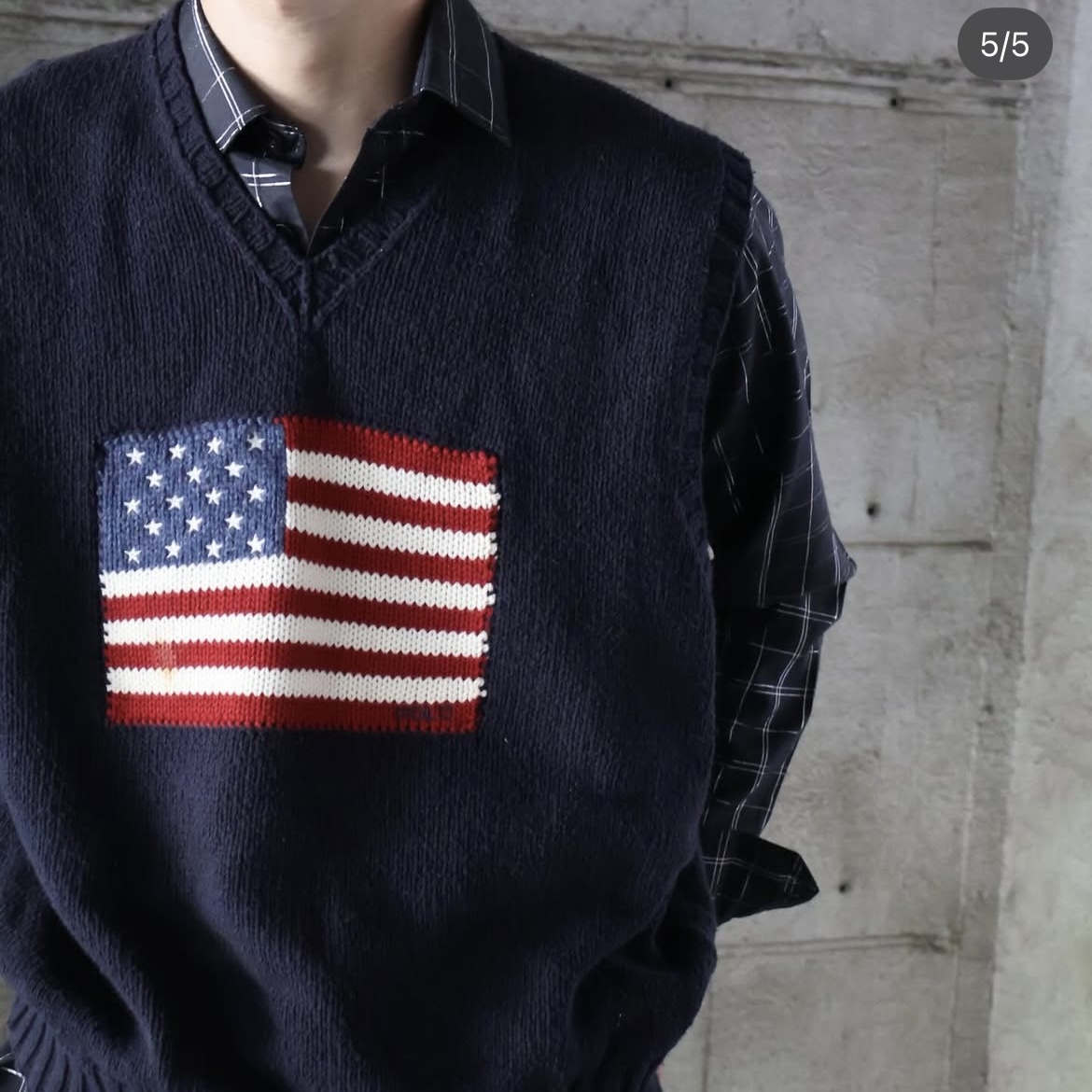 POLO Ralph Lauren 星条旗柄 コットンニットベスト NAVY XL
