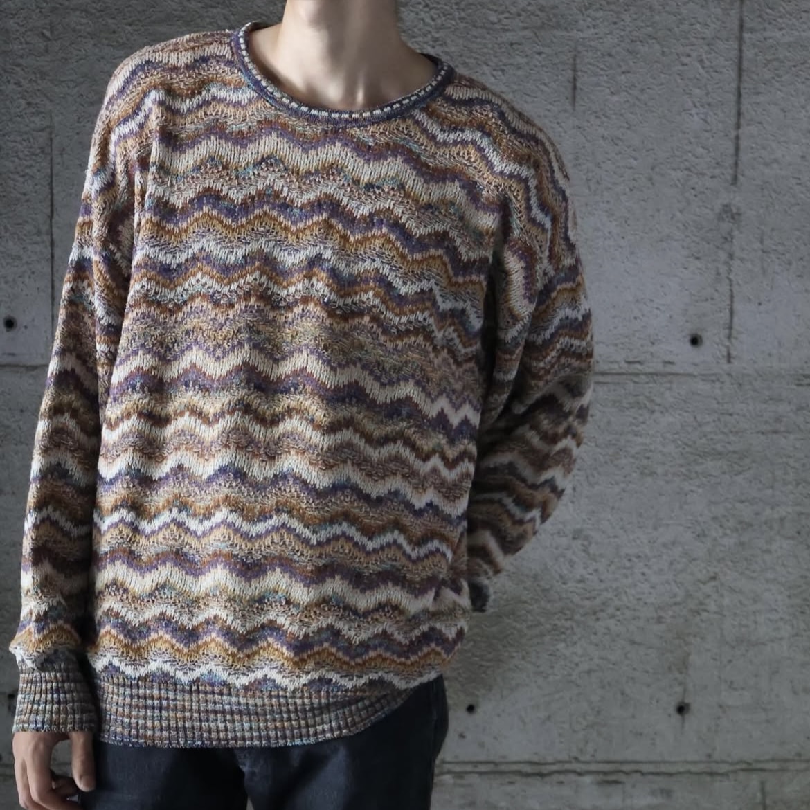 80〜90's MONDO DI MARCO ITALY製 マルチボーダー柄 コットンリネン ニットセーター