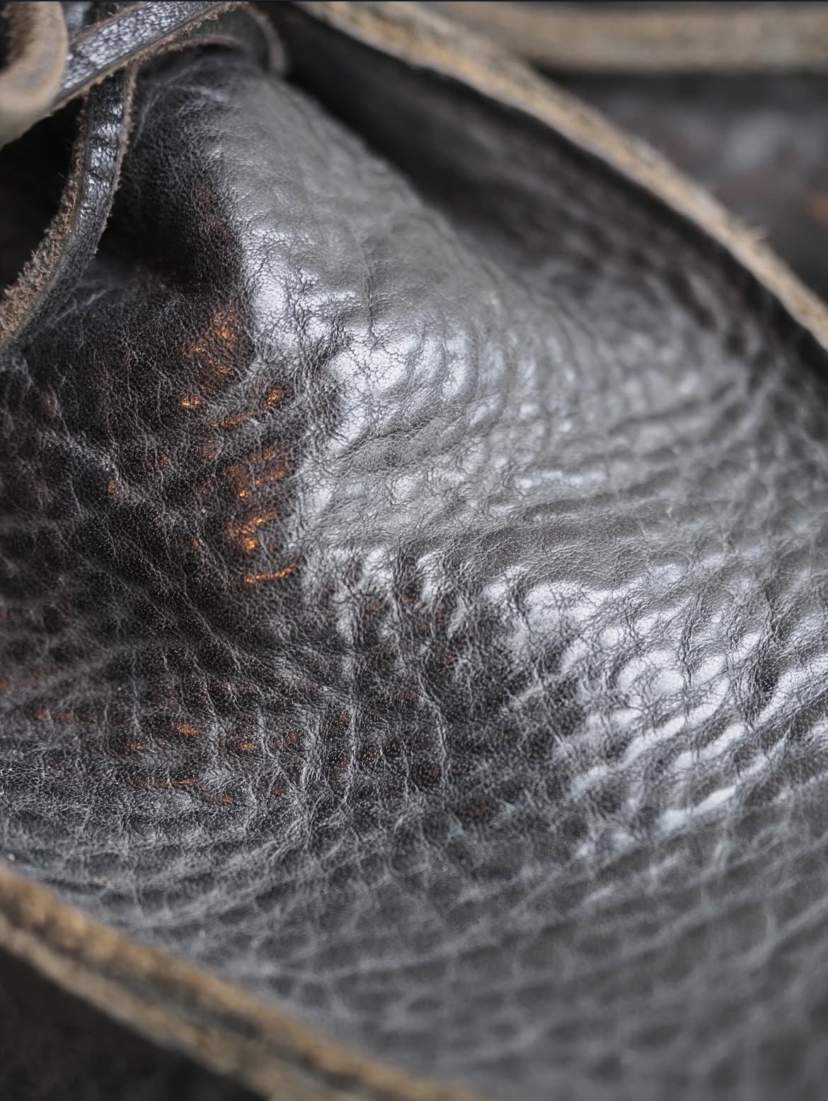 この方法は昔ながらの伝統的な鞣し方で、化学薬品を使うクロム鞣しに比べて、時間もコストもかかるけど、風合い・経年変化・環境面で大きなメリット有り