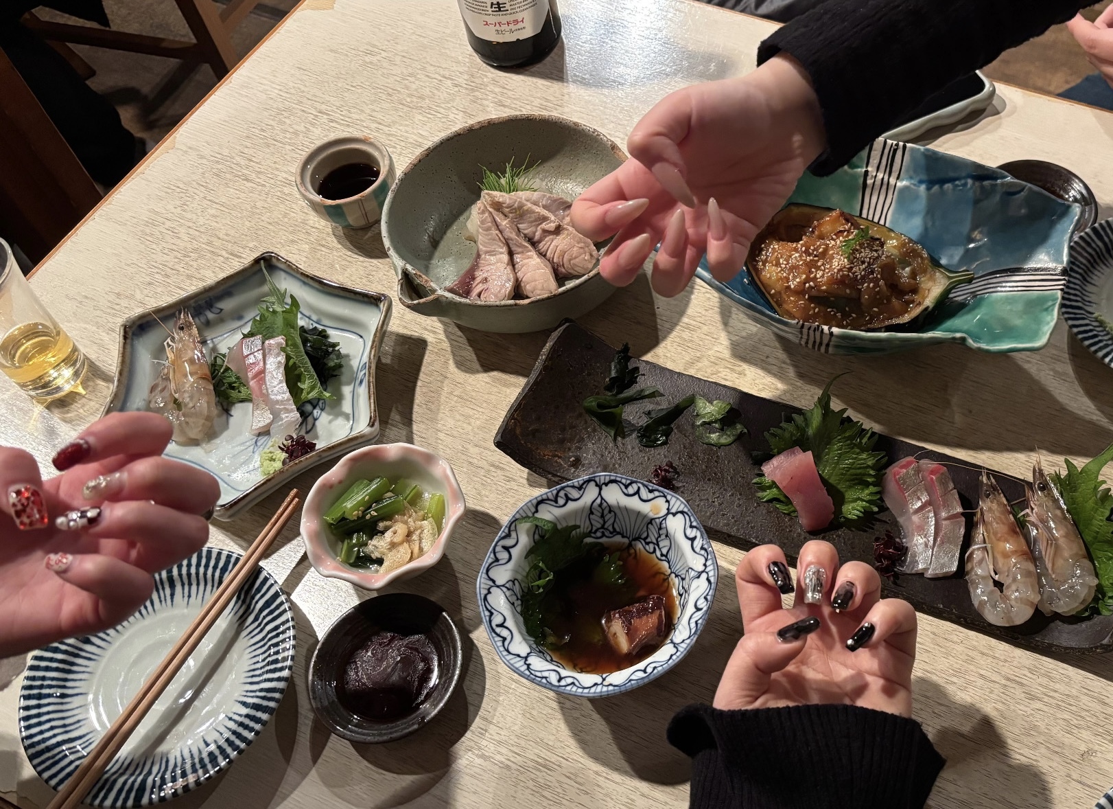 ネイルが終わった後はもう一人合流して、安定のはしご酒スタートです。笑