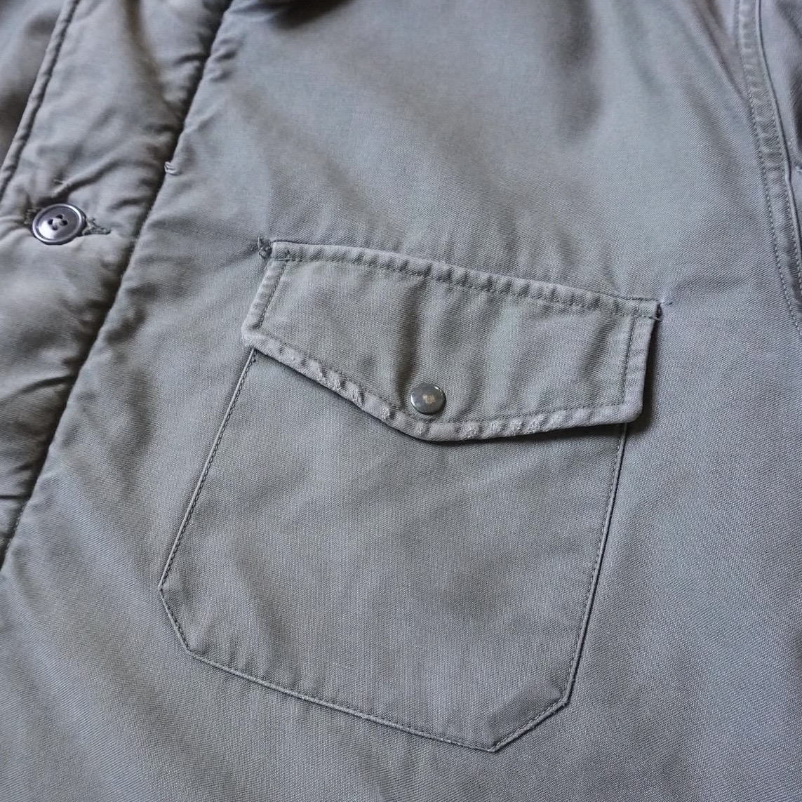 胸ポケットに三角フラップが採用されている点や、袖にパイピングが施されている点など、後期型とは異なるディテールをお楽しみいただけます。
