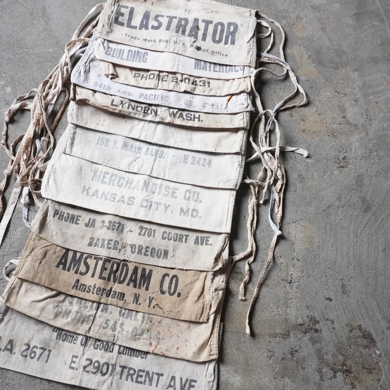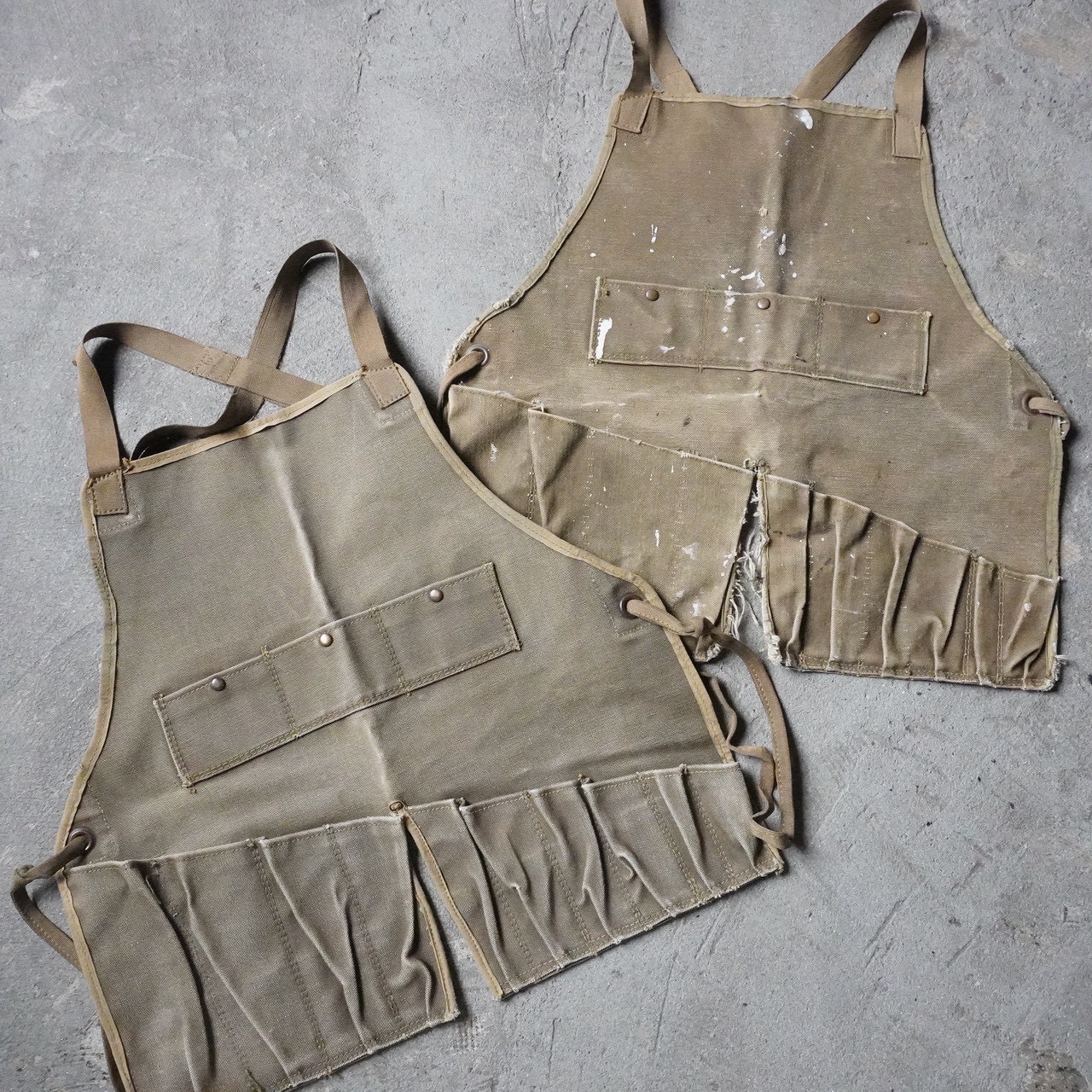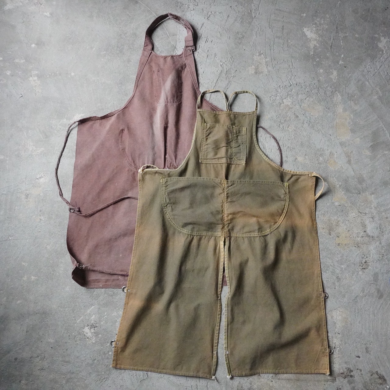 今回ご用意しているエプロンは40~70年代頃の様々な生地やディティールのものとなっており、ワークエプロン一括りにエプロンといっても多種多様で個体ごとのダメージや汚れなどの違いも魅力です。