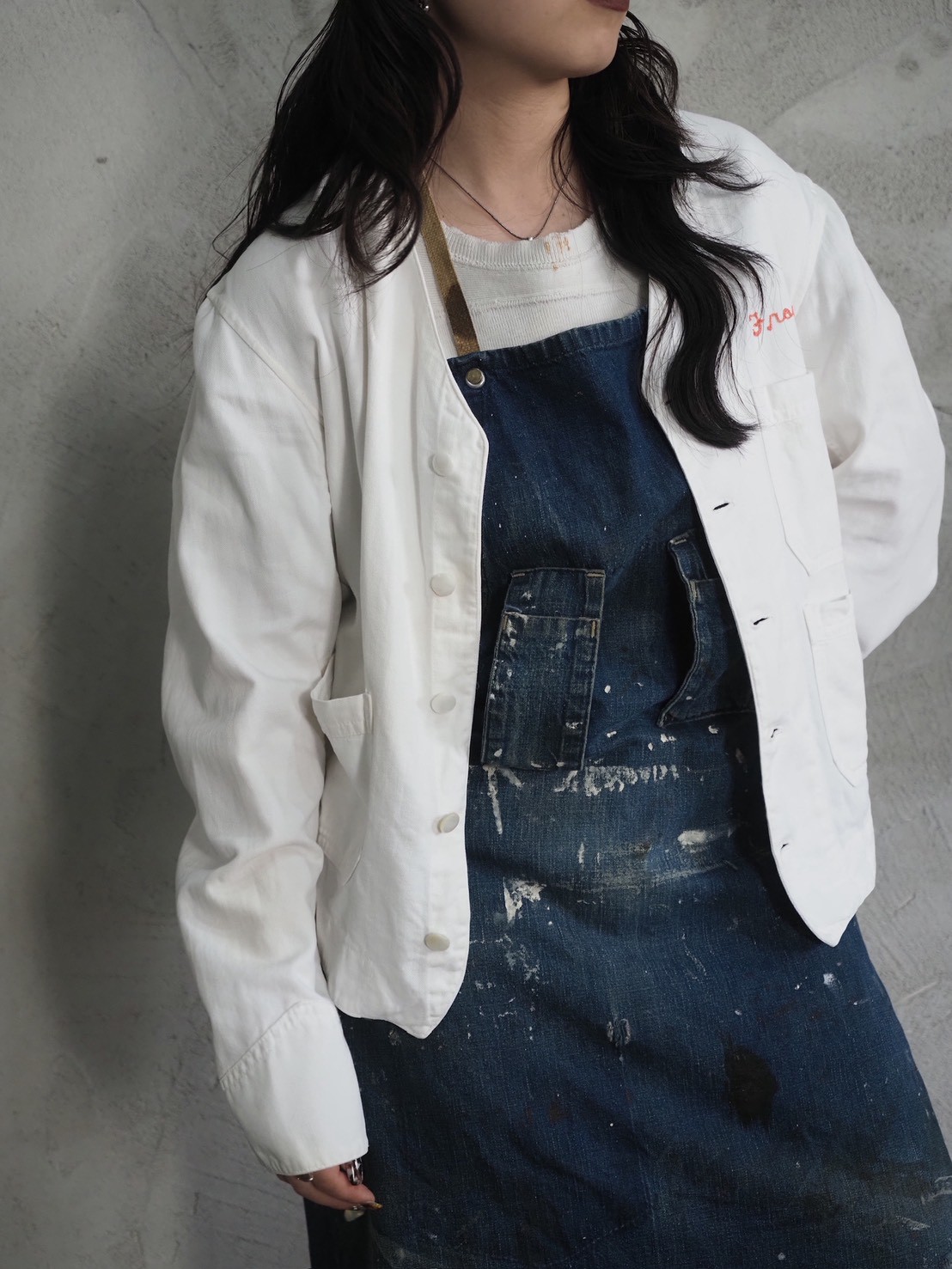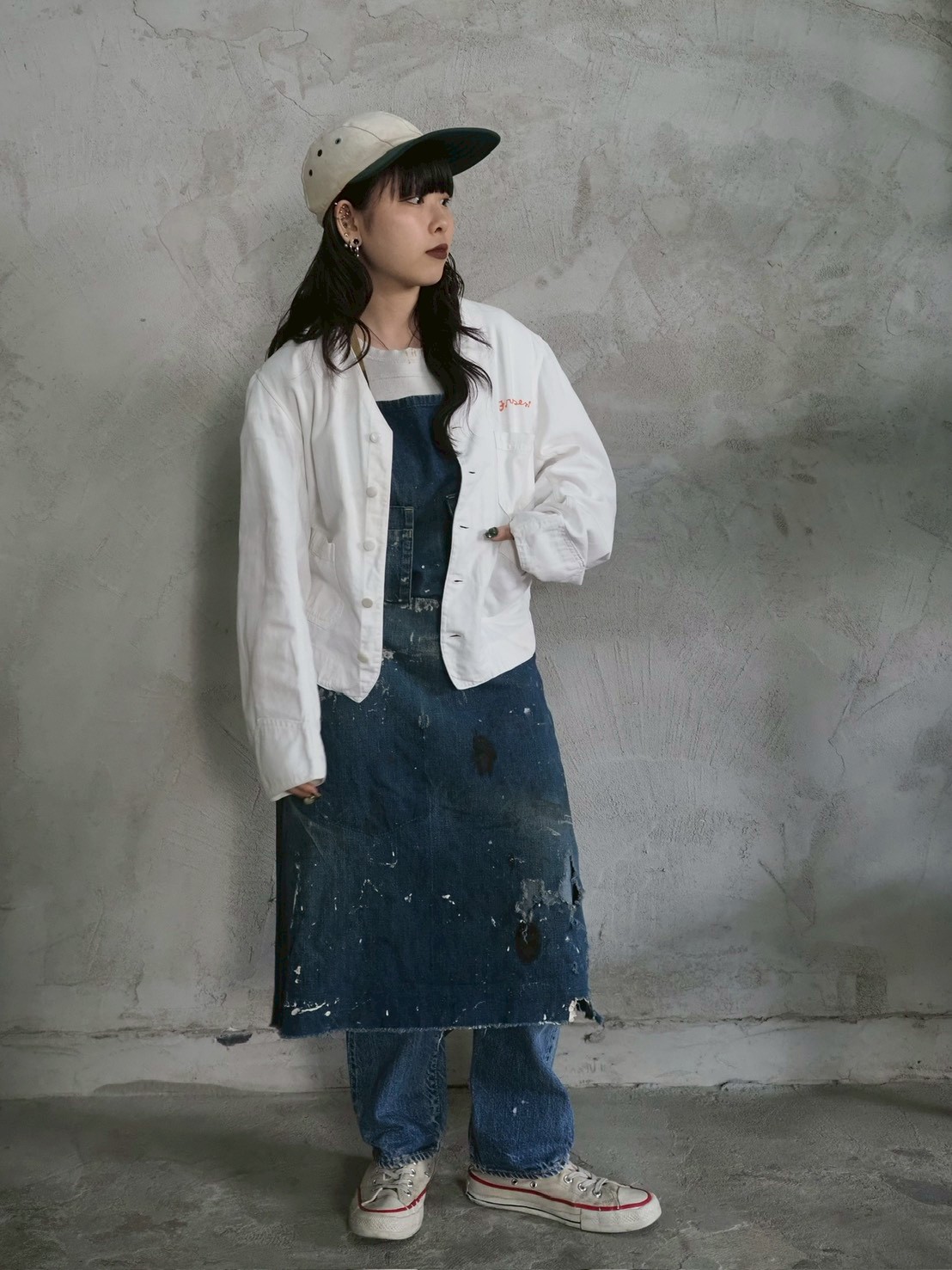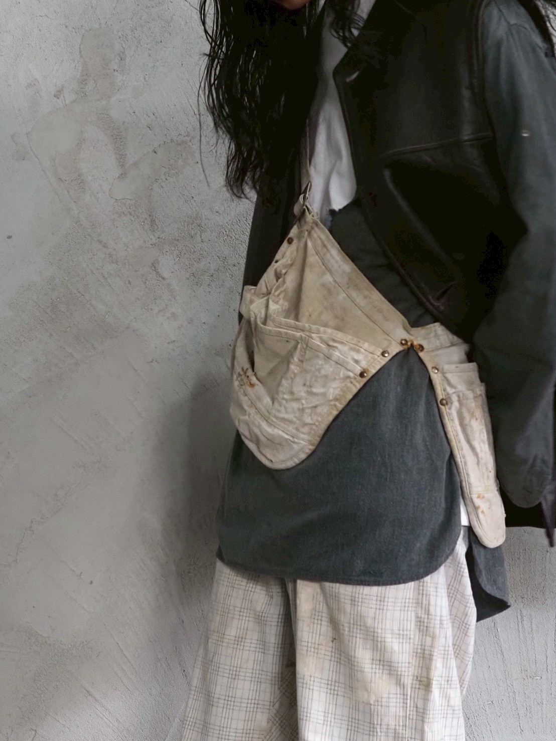 そういった背景を持ちながら、現代ではまた違った楽しみ方ができるエプロンを単なる実用品としてではなく、ファッションの一部としてもう少しスタイリングに厚みを付けたい時や、これから暑さでレイヤードがしんどくなってくる時期にワンポイントとして使用したり、簡易的なバッグとして使用したりと可能性は無限大です!