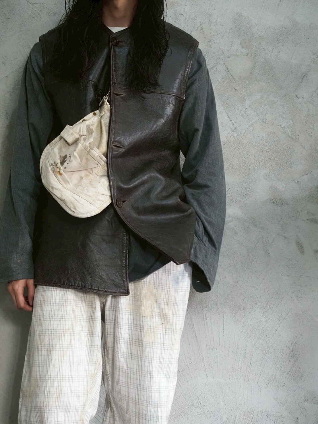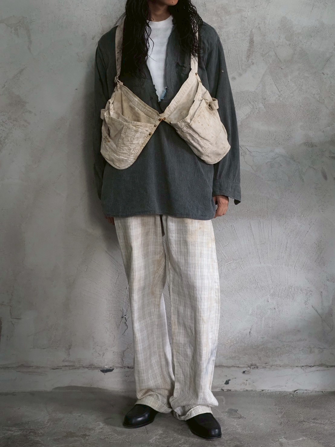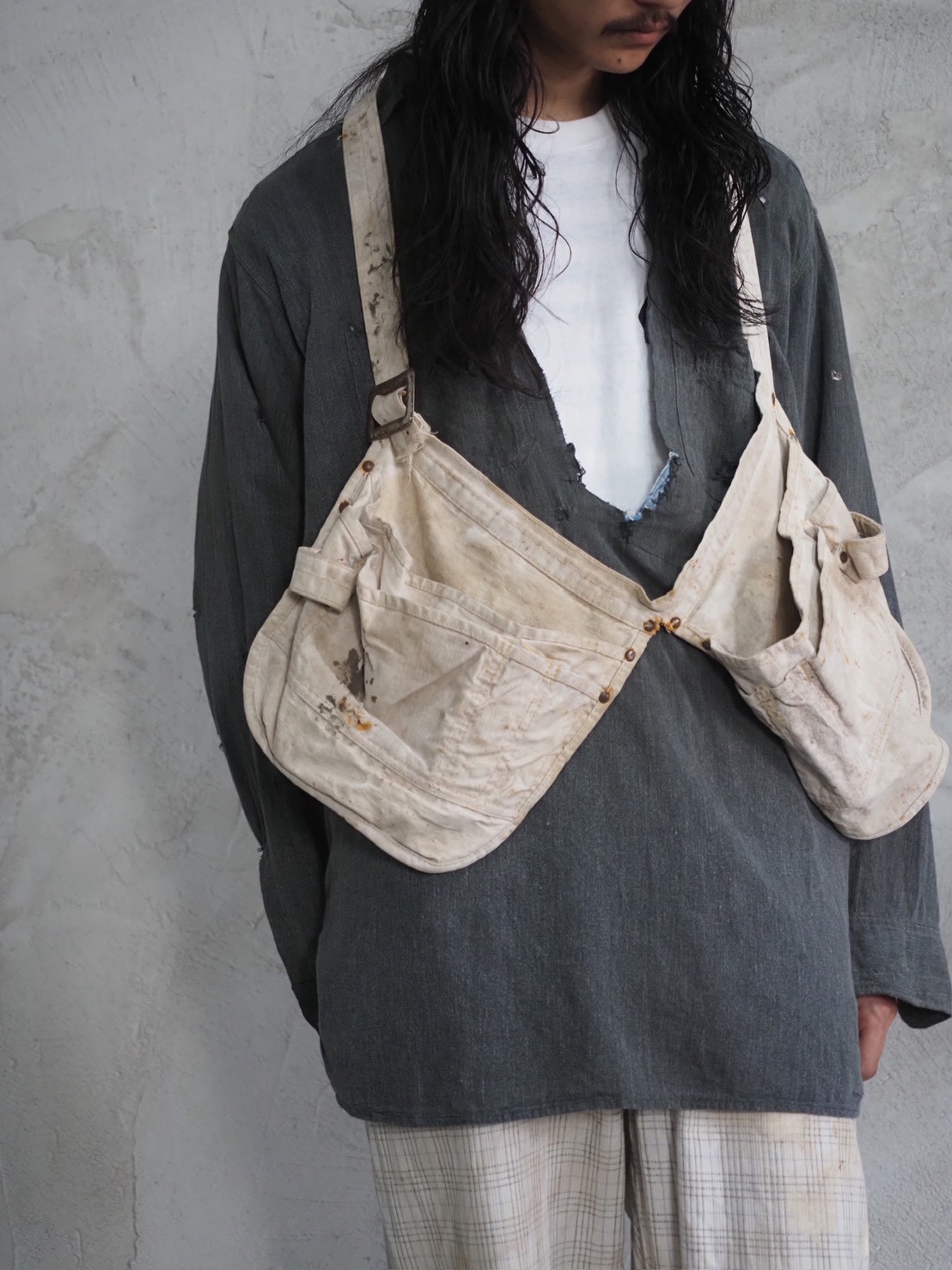 そういった背景を持ちながら、現代ではまた違った楽しみ方ができるエプロンを単なる実用品としてではなく、ファッションの一部としてもう少しスタイリングに厚みを付けたい時や、これから暑さでレイヤードがしんどくなってくる時期にワンポイントとして使用したり、簡易的なバッグとして使用したりと可能性は無限大です!