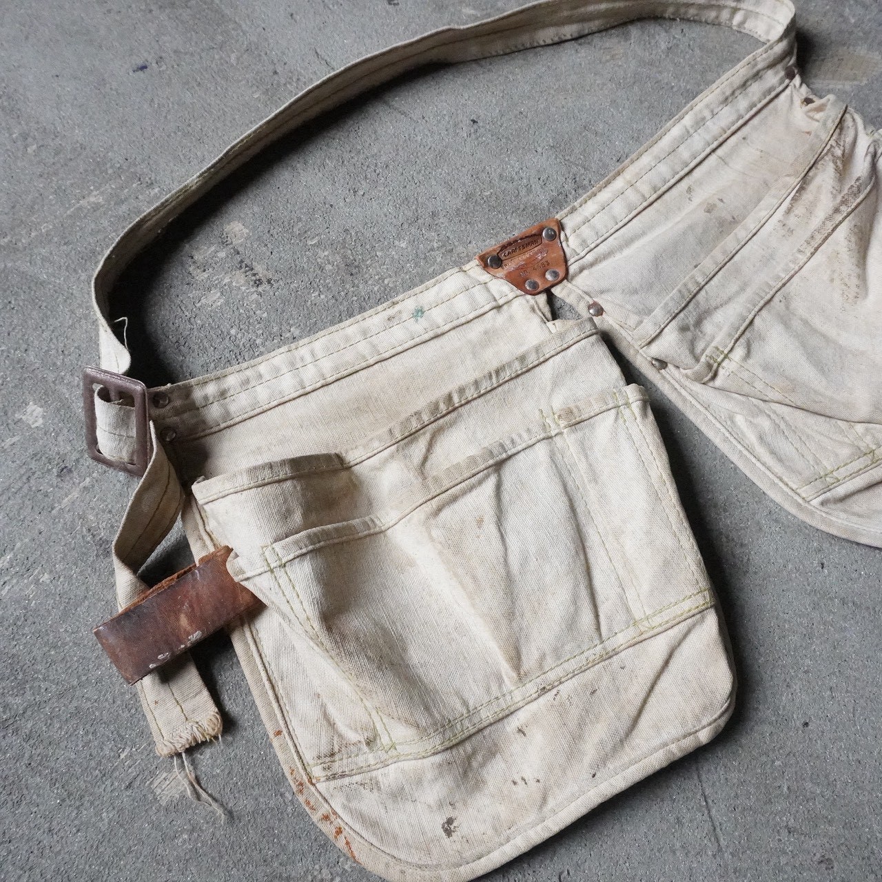 本来は工場やガレージでの作業、農作業、ショップでの軽作業など、幅広い現場で使われてきた実用的なアイテムということもあり、ツールや小物を持ち運ぶためのポケットや構造にも、その用途がしっかりと表れています。
