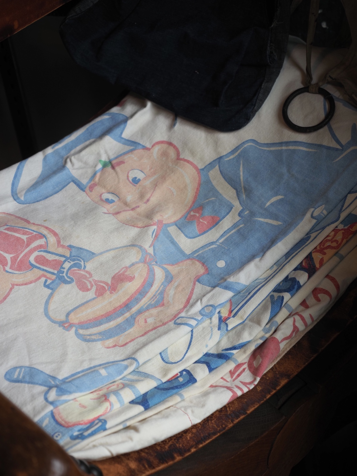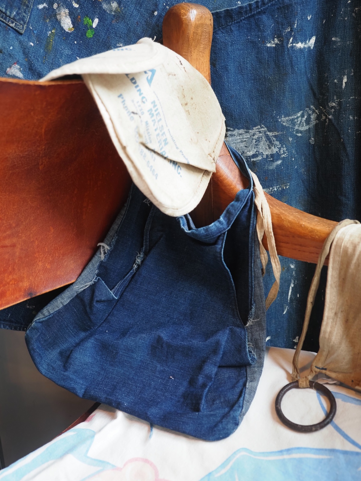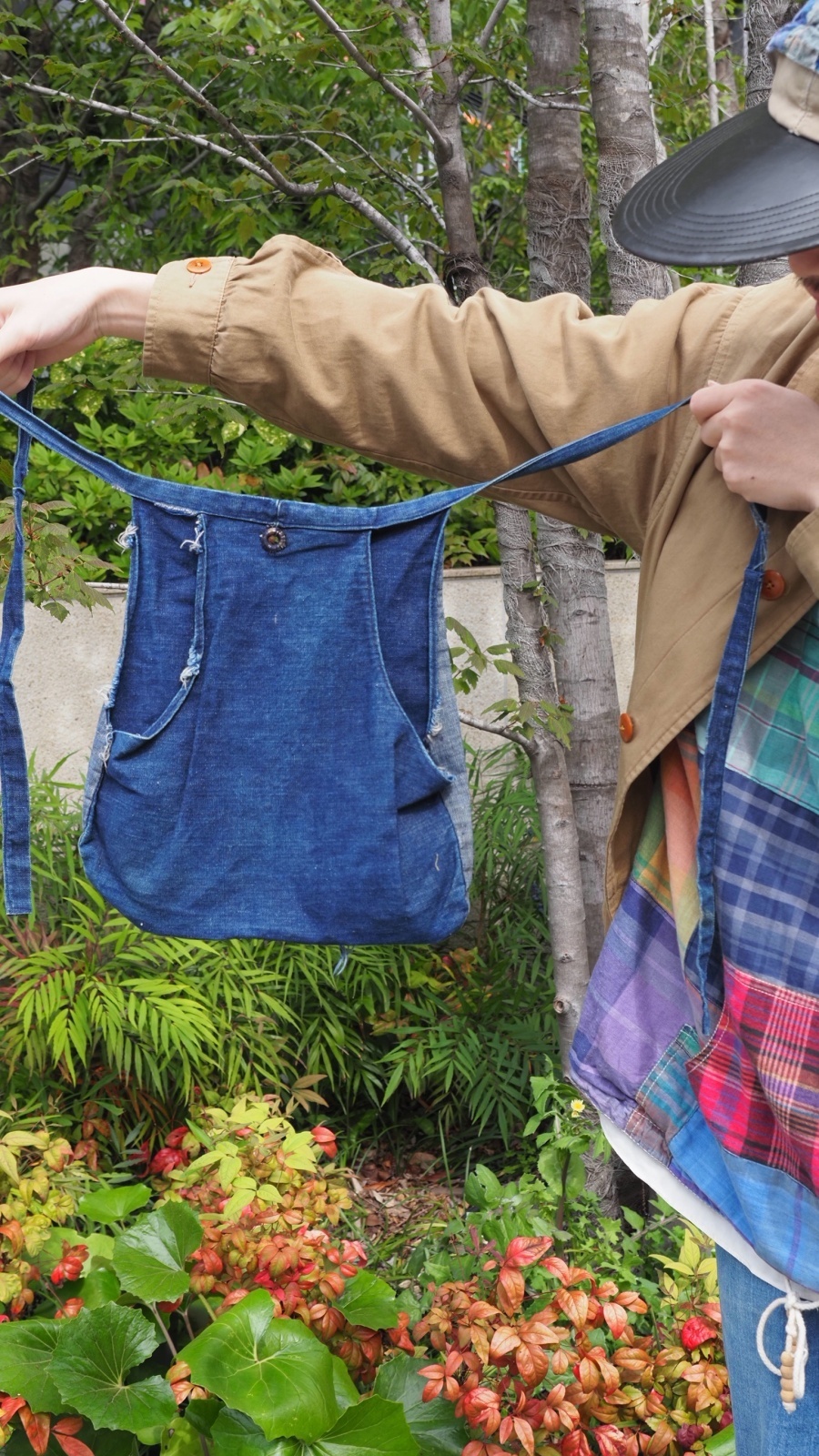 オーソドックスなデニムのエプロンもあれば、腰巻のエプロンバッグ、可愛いプリント入りのもの。