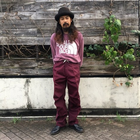 全体的に大きくなりますので、膝のカーブ部分が1番目だ立たず緩やかな印象で、ミリタリーのM65パンツなどのようなズコンっとしたものになります。
