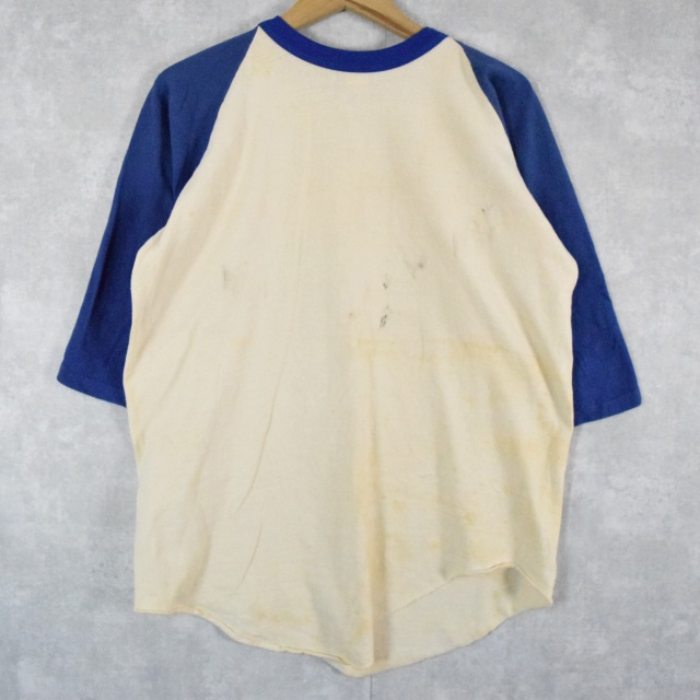 70's~80's RUSSELL USA製 "KITCHIN'S" フロッキープリントラグランTシャツ L [94906]