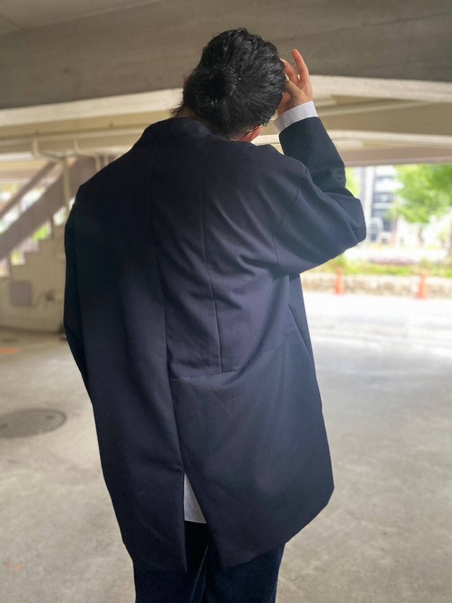 少しだらしないゆったりとしたワイドなシルエットのジャケットと