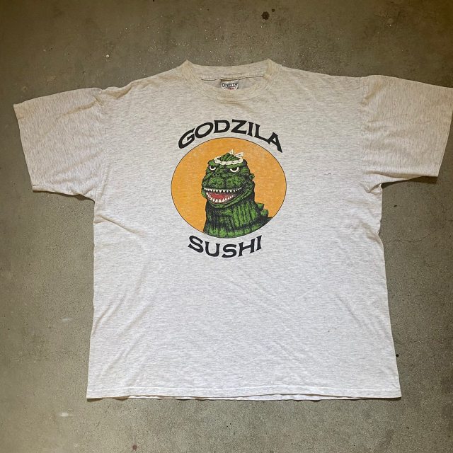 90's USA製 "GODZILA SUSHI" キャラクターパロディプリントTシャツ XL \12.900+tax