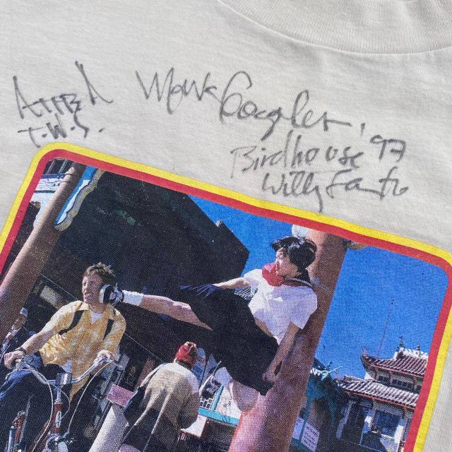 90's HOOK-UPS USA製 "KARATE KID" Mark Gonzales, Birdhouse Willie Santos, Jeremy Klein サイン入りTシャツ DEADSTOCK L \98.000+tax