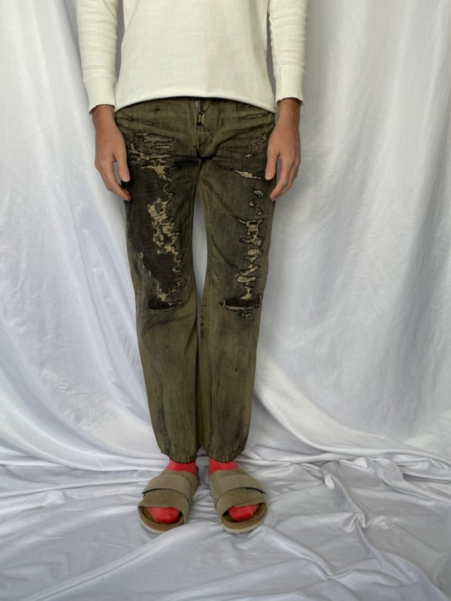 - こちらの商品は、ユーズド特有の雰囲気を表現したアイテムです。 ダメージ等をデザインとして落とし込んでおります。 着用感はありますが、目立った汚れ、ダメージの無い、とても綺麗な良い状態です。