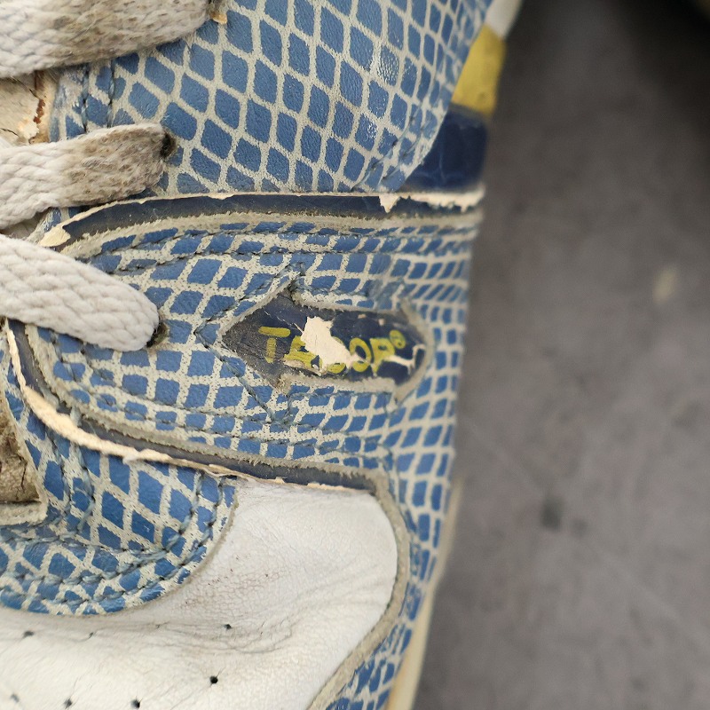 薄汚れ、擦れ、キズ、ベロ・サイドの剥がれ、ソールの硬化があり、ビンテージらしい良い雰囲気が出ており、大変かっこいい一着です。
