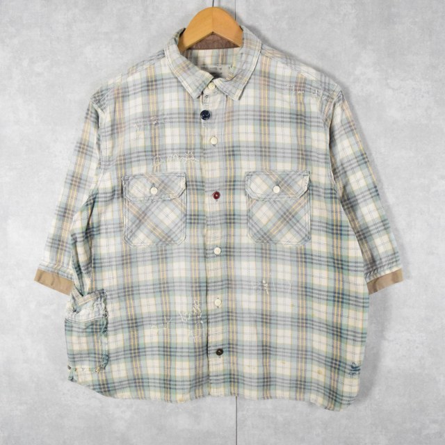 KAPITAL チェック柄 ダメージ加工 コットンシャツ L [113660]