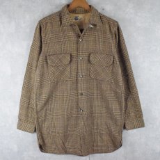 60's PILGRIM グレンチェック柄 マチ付き ウールシャツ M [115589]