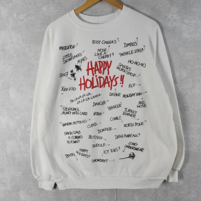 90's USA製 "HAPPY HOLIDAYS!!" 発泡プリントスウェット XL [116458]
