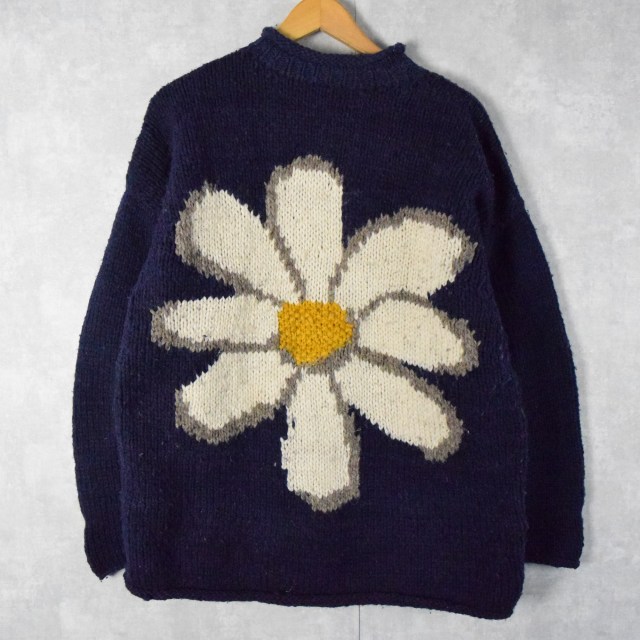 REY WEAR ECUADOR製 花柄編み ロールネック ウールニットセーター [116848]