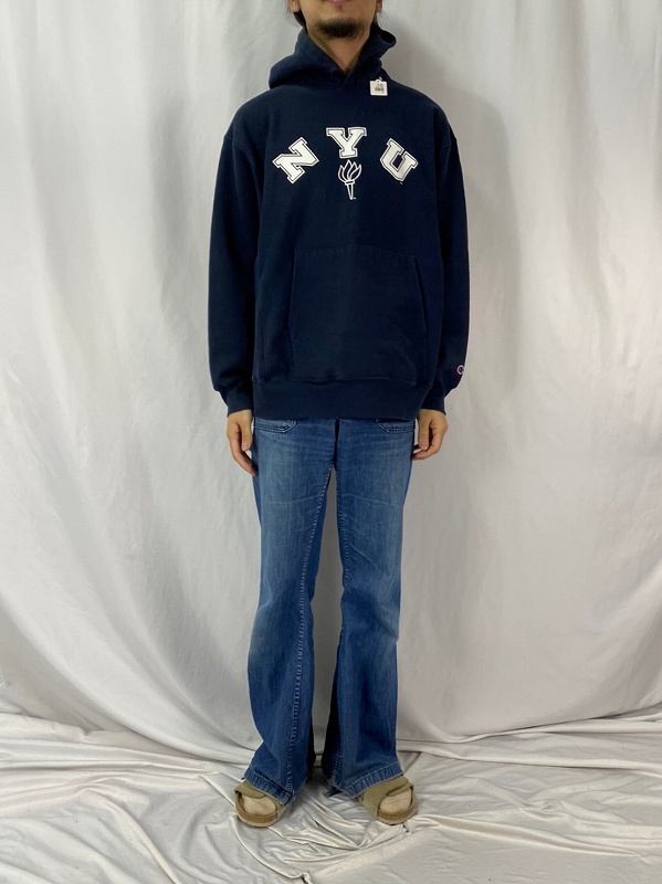 Champion ORIGINAL REVERSE WEAVE "NYU" スウェットフーディ L [120247]