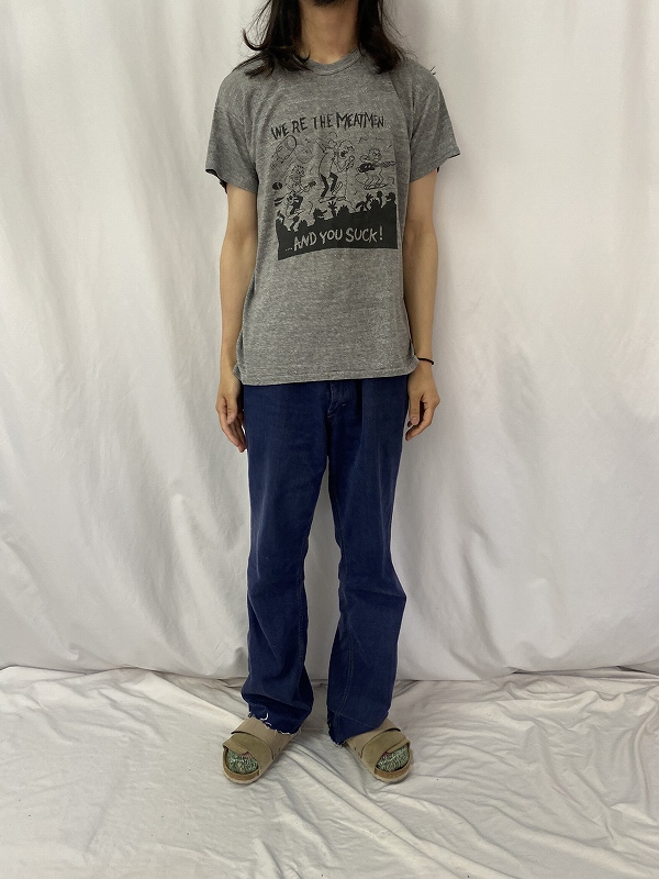 【SALE】 80's USA製 "WE'RE THE MEAMEN... AND YOU SUCK!" ロックバンドイラストプリントTシャツ XL [121842]
