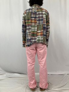 Ralph Lauren "CUSTOM FIT" マドラスチェック柄 パッチワーク コットンボタンダウンシャツ L [124044]
