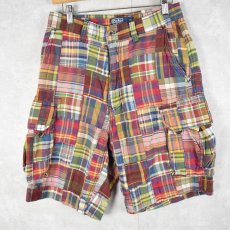 POLO Ralph Lauren マドラスチェック柄 パッチワーク コットンカーゴショーツ W28 [124061]