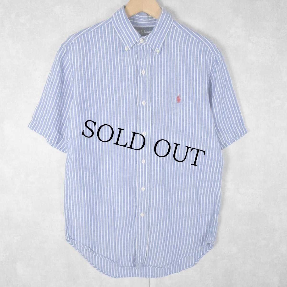 POLO Ralph Lauren "CLASSIC FIT " ストライプ柄 ボタンダウンリネンシャツS [124278]
