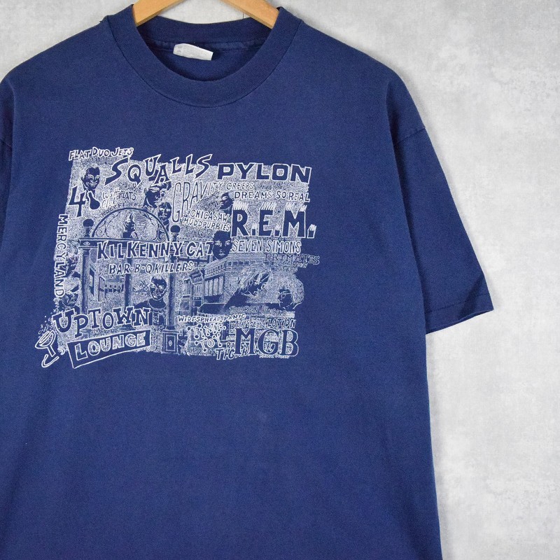 90's "FLAT DUO JETS, R.E.M, PYLON..." アーティストイラストプリントTシャツ XL [125873]
