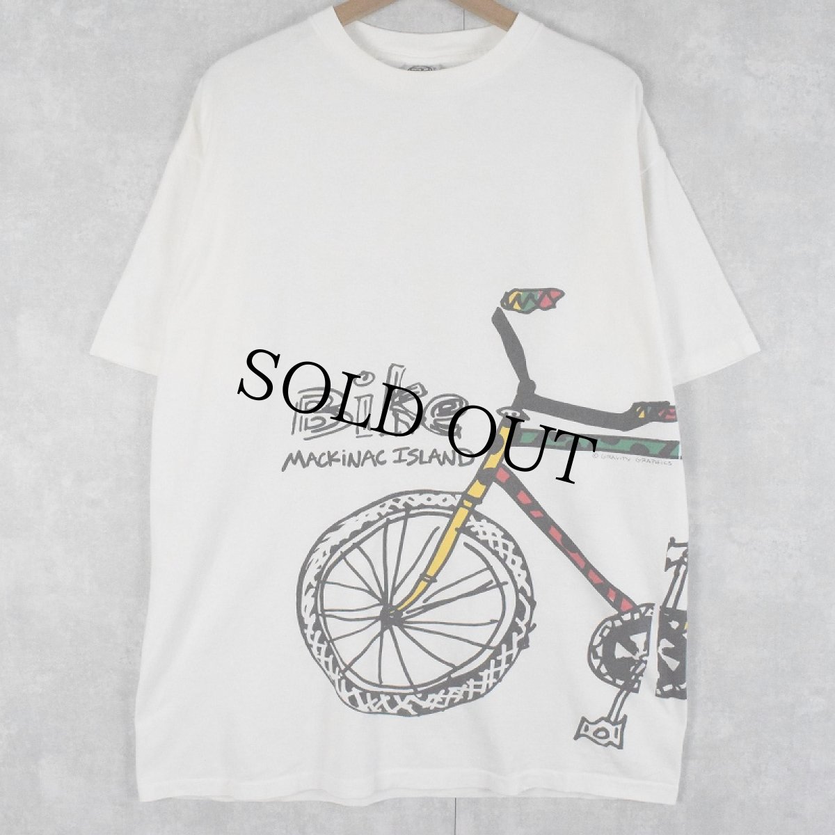 90's GRAVITY GRAPHICS USA製 "Bike BLOCK ISLAND" 自転車プリントTシャツ L [125956]