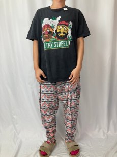 "FD-UP FILTHY STREET" ガンジャプリント キャラクターパロディTシャツ BLACK [127317]