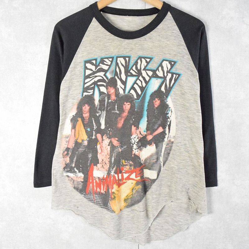 80's KISS "ANIMALIZE" ハードロックバンド アルバムラグランTシャツ [127760]