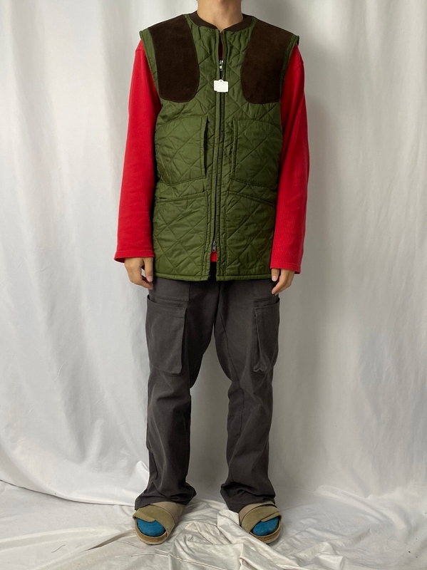 90's Barbour ENGLAND製 スエード切り替え キルティングベスト S [127905]
