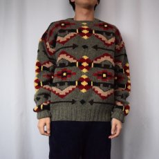 80〜90's POLO COUNTRY Ralph Lauren 民族柄 ウールハンドニットセーター M [132759]