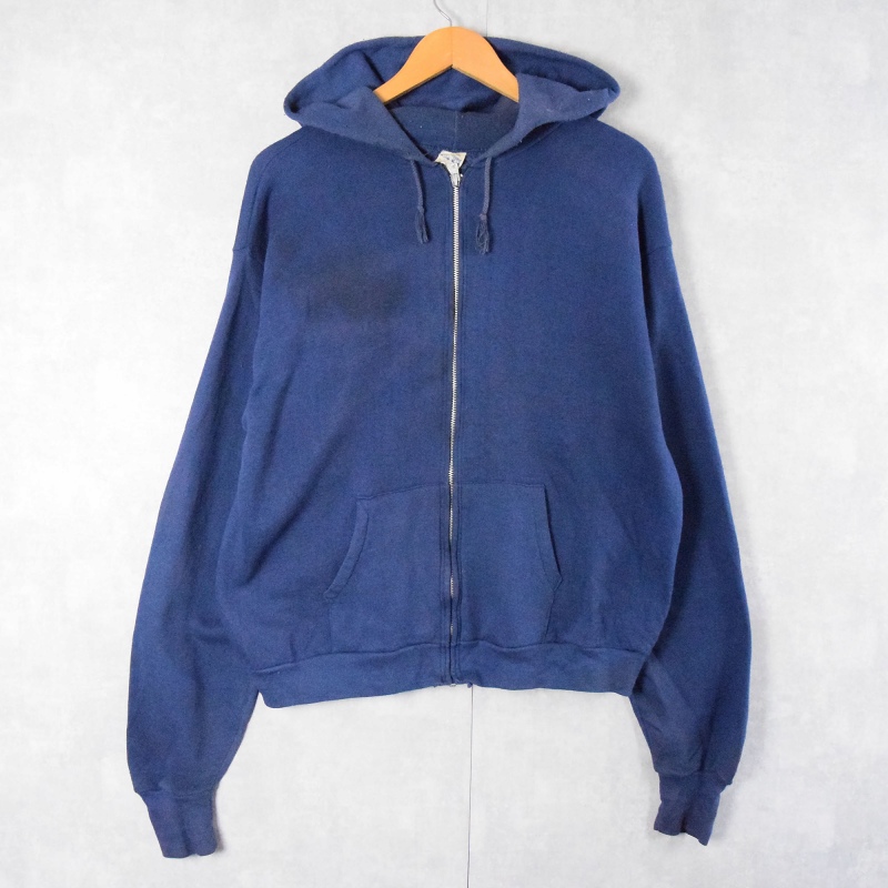 80's Healthknit USA製 無地スウェットジップパーカー NAVY XL [134085]