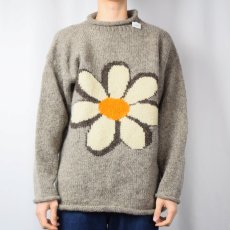 【SALE】 花柄 ロールネック ウール ハンドニットセーター [135021]