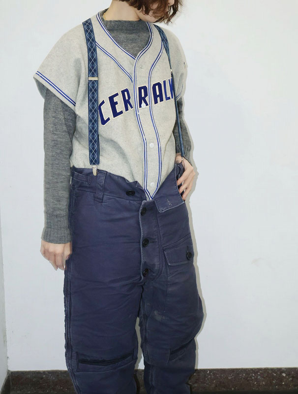- 黄ばみ、汚れ、小穴等のダメージがありますが、雰囲気が出ており、大変かっこいい一着です。