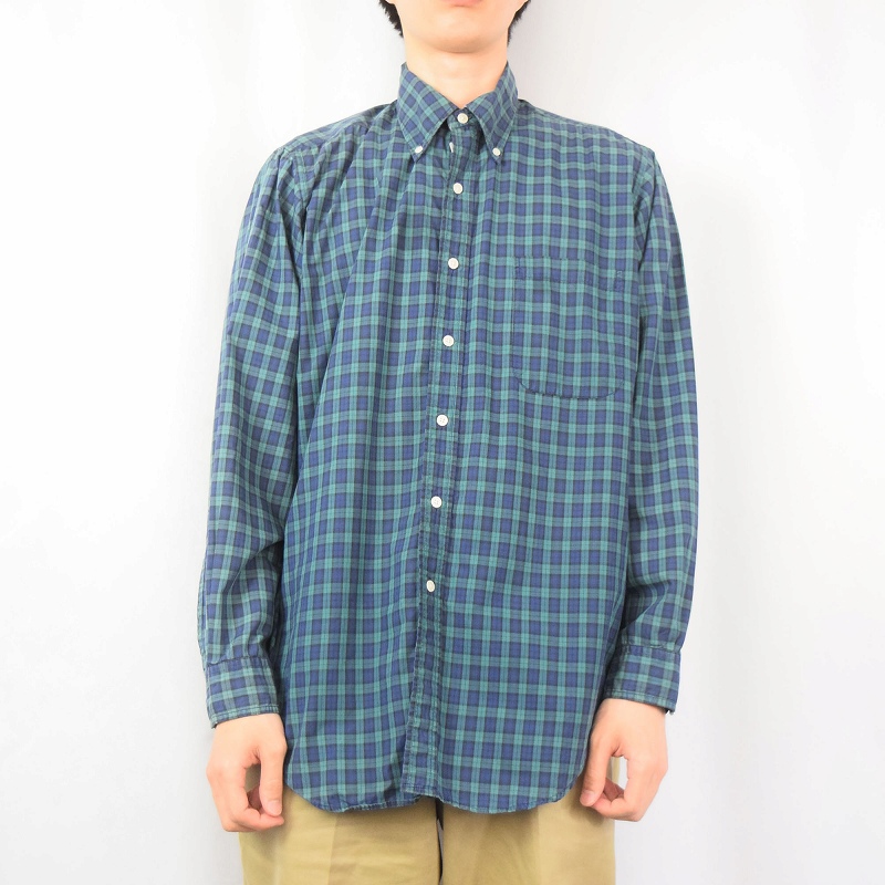 Brooks Brothers USA製 チェック柄 コットンポプリンボタンダウンシャツ SIZE16 [136363]
