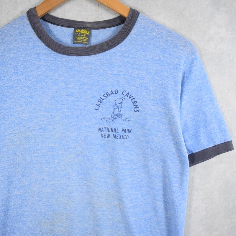 70's JERZEES BY RUSSELL USA製 "CARLSBAD CAVERNS" プリントリンガーTシャツ M [137184]