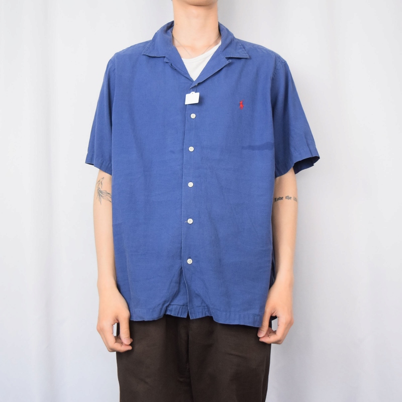 POLO Ralph Lauren "CURHAM CLASSIC FIT" リネン×コットン オープンカラーシャツ L [137303]