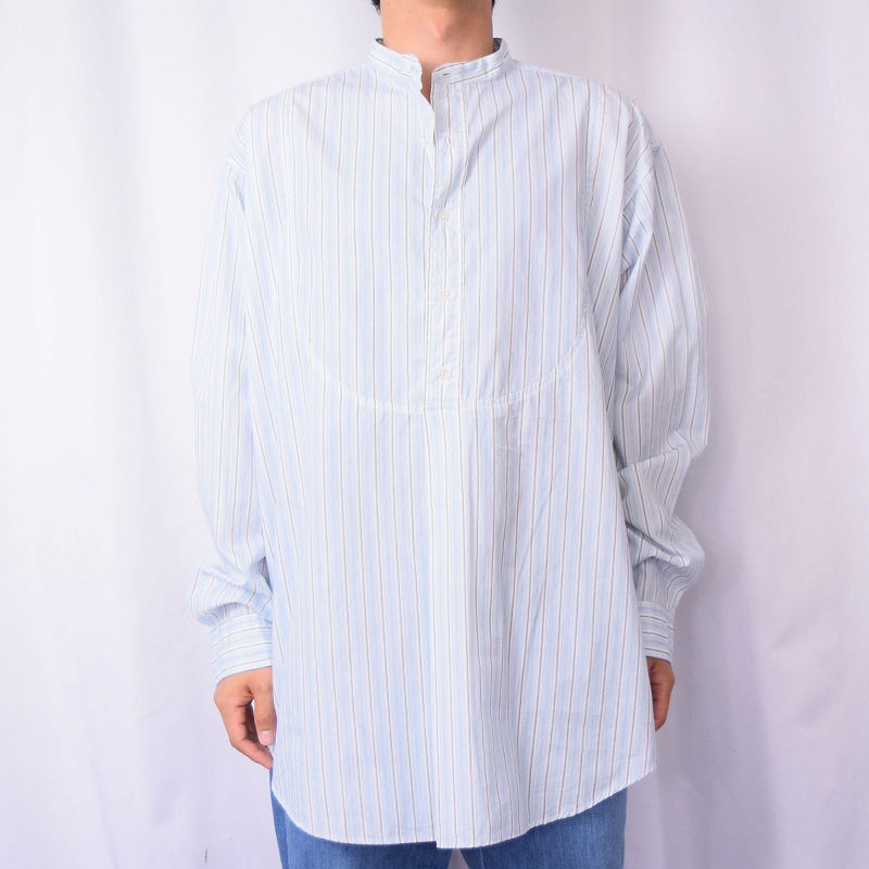 【SALE】 80〜90's Ralph Lauren POLO COUNTRY マルチボーダー柄 コットンバンドカラーシャツ L [137367]
