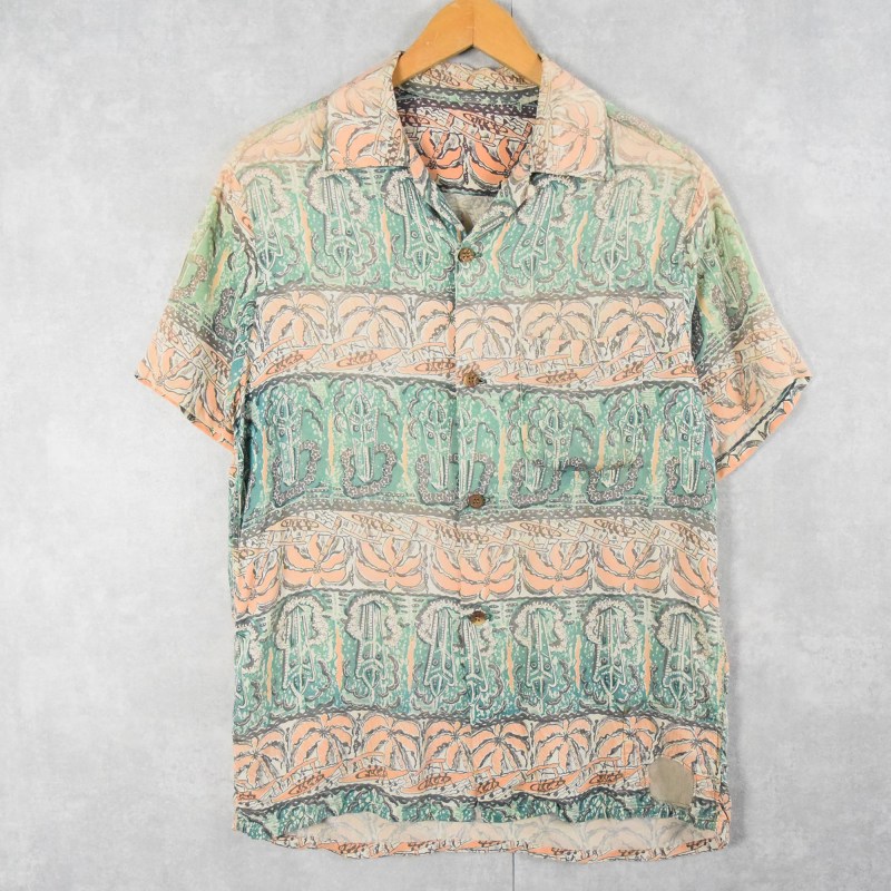 60〜70's 総柄 レーヨン混 アロハシャツ [138088]