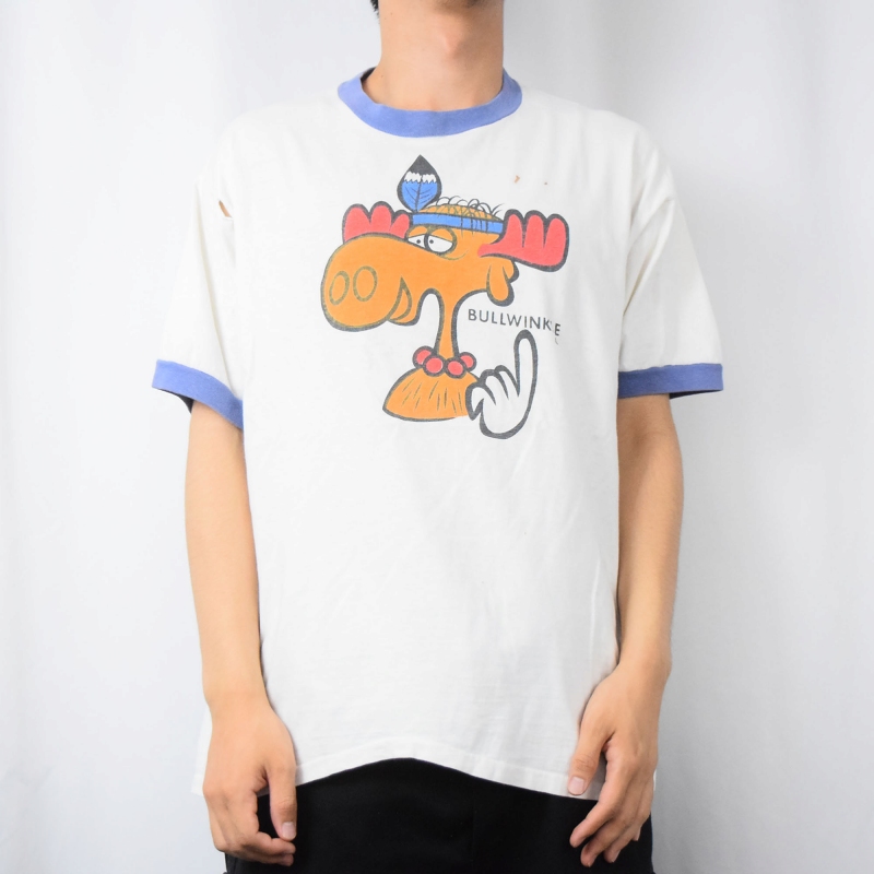 80's BULLWINKLE USA製 キャラクタープリントリンガーTシャツ XL [138848]