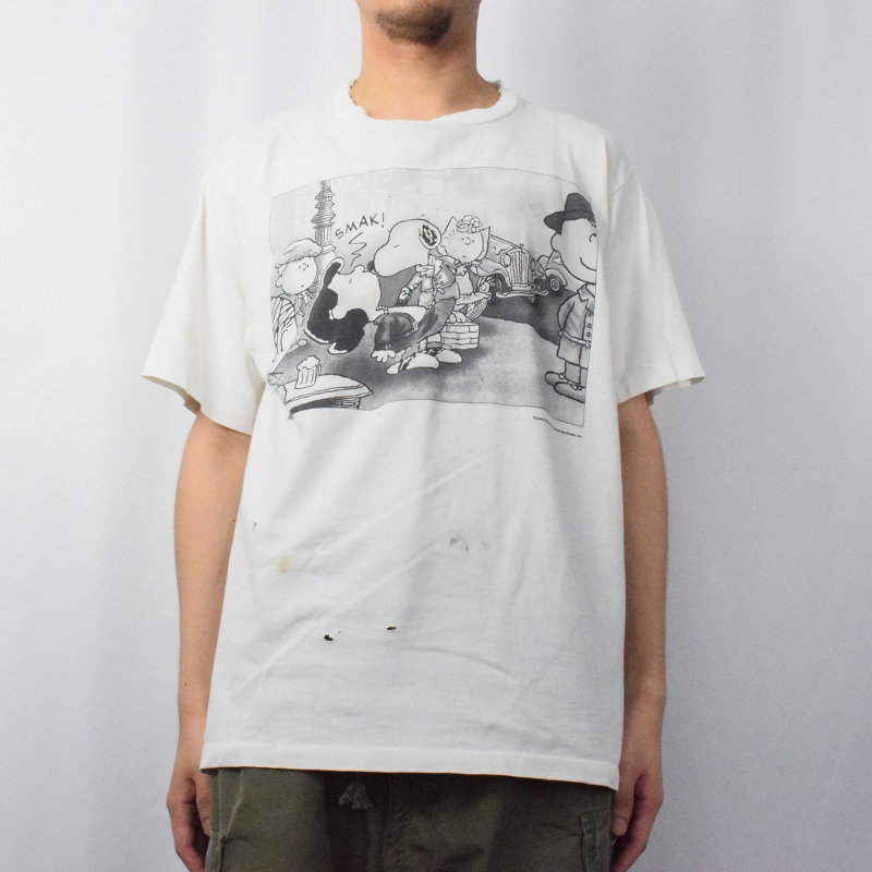 90's PEANUTS USA製 "La baiser de l'Hotel de Ville, Paris" パロディプリントTシャツ XL [139163]