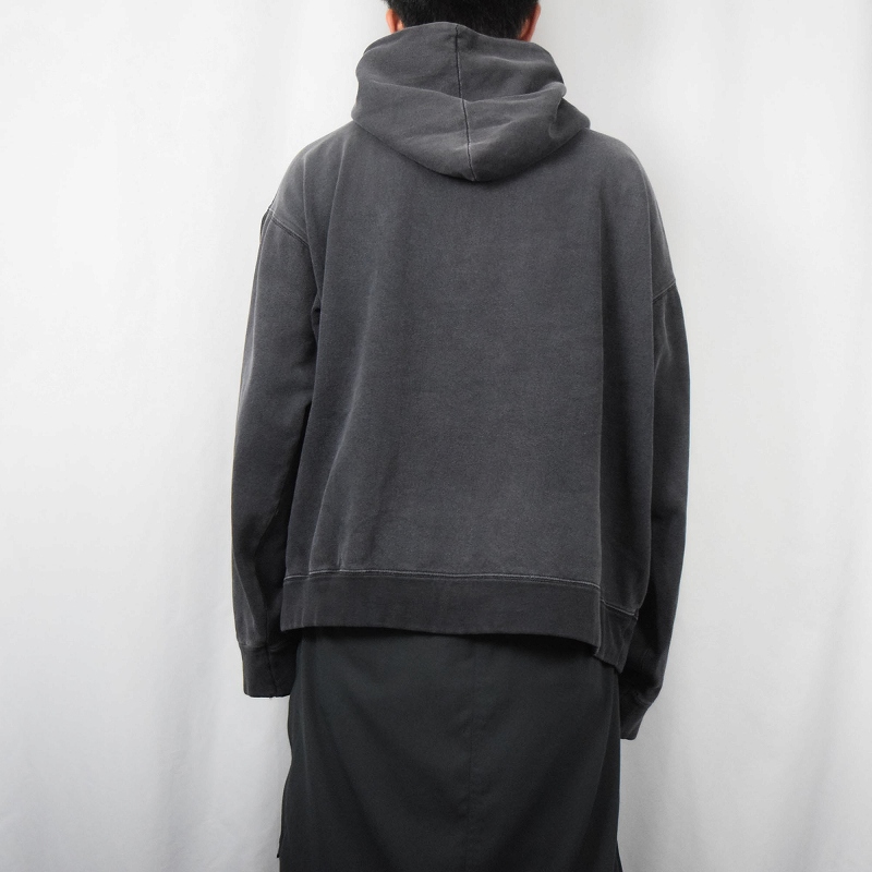 ロゴプリントの乗ったARTIMONDEボディのスウェットフーディかつフェードしたブラックボディ、XLサイズと条件が揃った一着です!